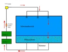 Die Reinigung des Wassers erfolgt durch die berechnete Anzahl von Wasserpflanzen, die durch die Trennung vom Schwimmbecken den Badespaß nicht beeinträchtigen, sowie mit Hilfe einer speziellen biologischen Technik. Die Wasserpflanzen, die extra für uns gezüchtet werden, beziehen wir